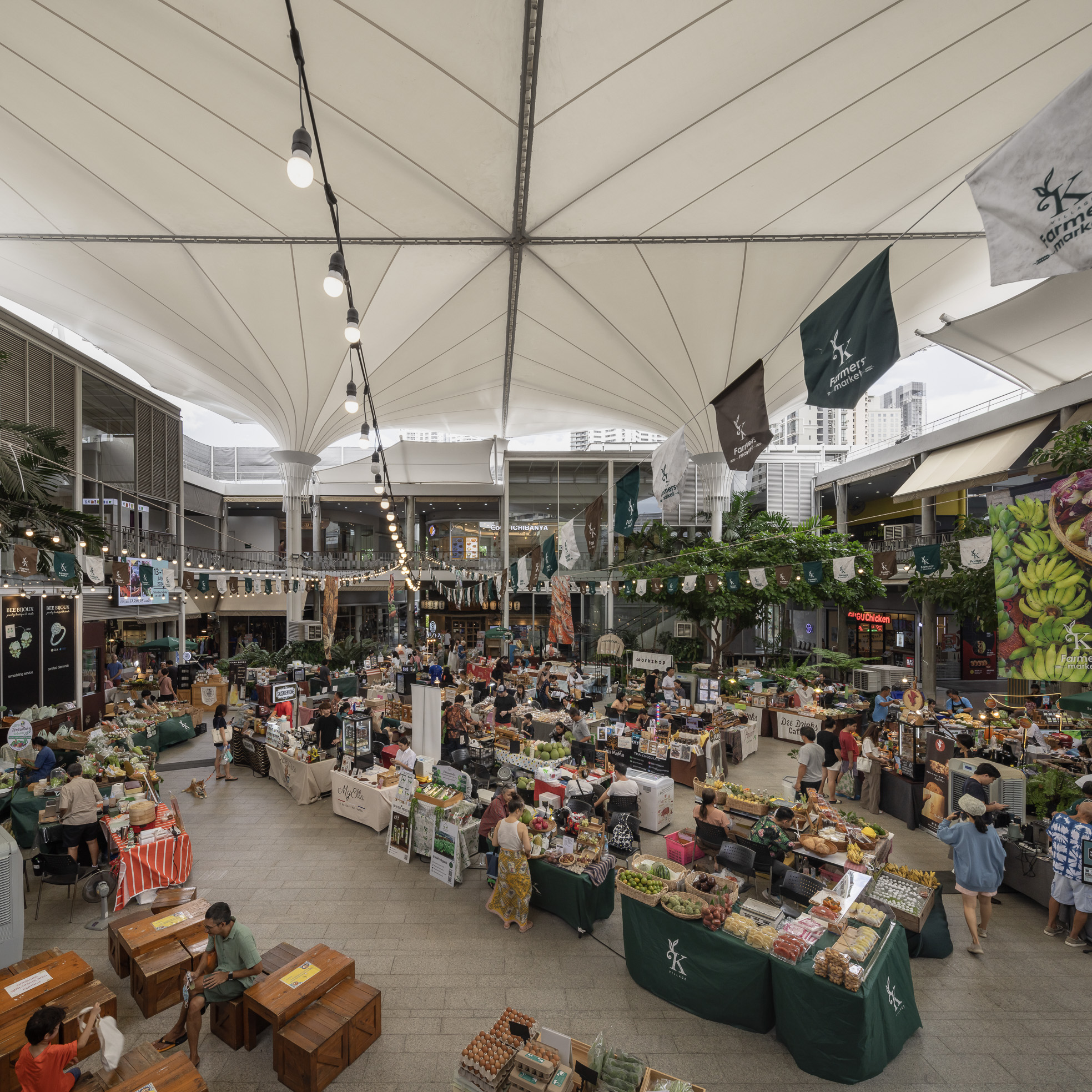 ด้วยความตั้งใจอยากให้ลูกค้าเข้าถึงผลิตภัณฑ์ออร์แกนิก จากแหล่งผลิตสู่มือผู้บริโภคโดยตรง ทาง K Village สุขุมวิท 26 จึงจัดตลาดนัดเกษตรกร หรือ Farmers’ Market ขึ้นในวันเสาร์-อาทิตย์ ทุกสัปดาห์ที่ 2 ของเดือน ทุกร้านค้าและเกษตรกรที่เข้าร่วมล้วนผ่านการคัดสรรมาเป็นอย่างดีว่าผลิตภัณฑ์มาจากธรรมชาติ และปลอดสารพิษ โดยมีสินค้าวางขายกว่า 120 บูธ มีทั้ง ผักผลไม้เกษตรอินทรีย์ อาหาร เครื่องดื่มเพื่อสุขภาพ สินค้าอุปโภคแบบออร์แกนิก และงานแฮนด์คราฟต์ต่างๆ โดยมีร้านแนะนำ ดังนี้