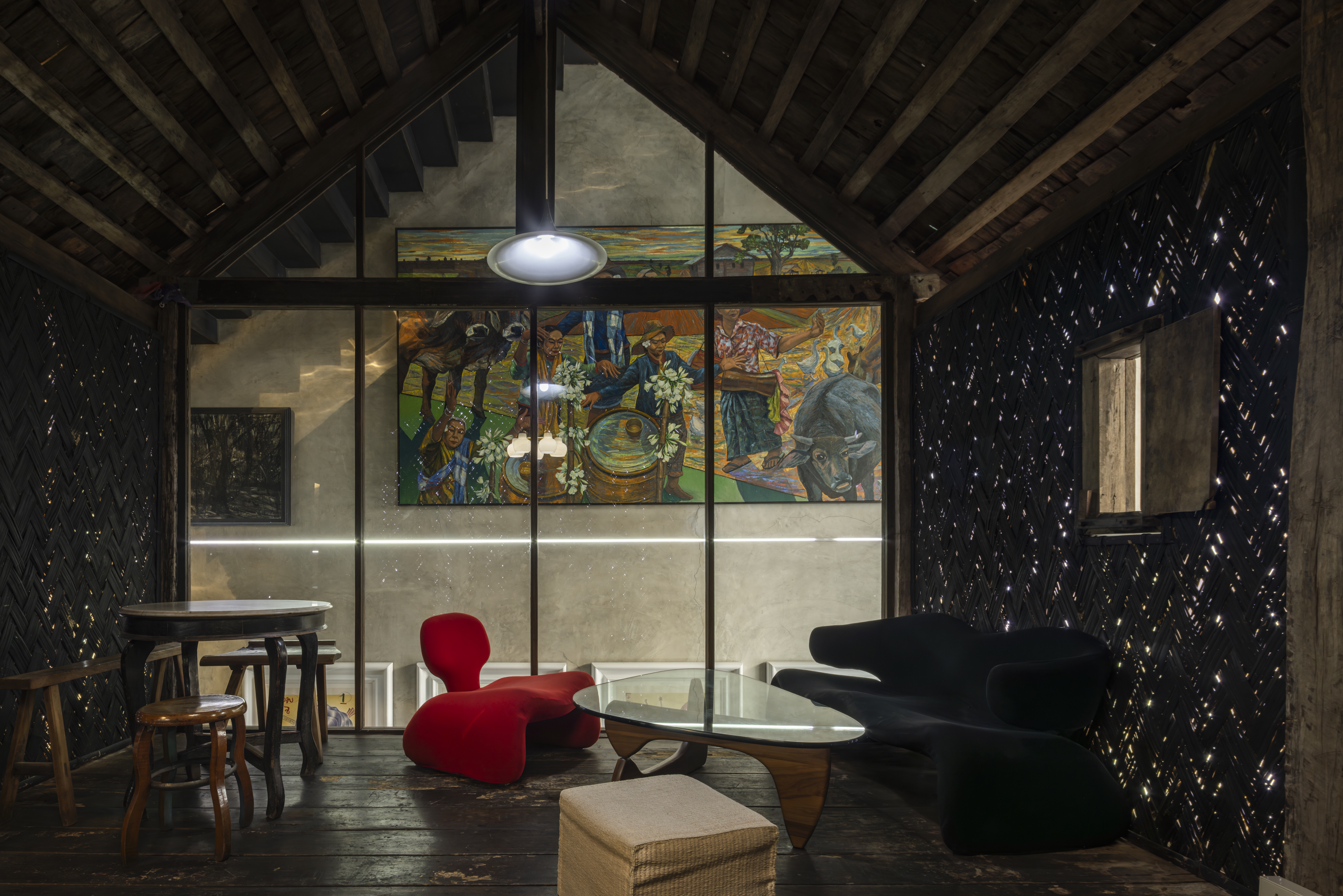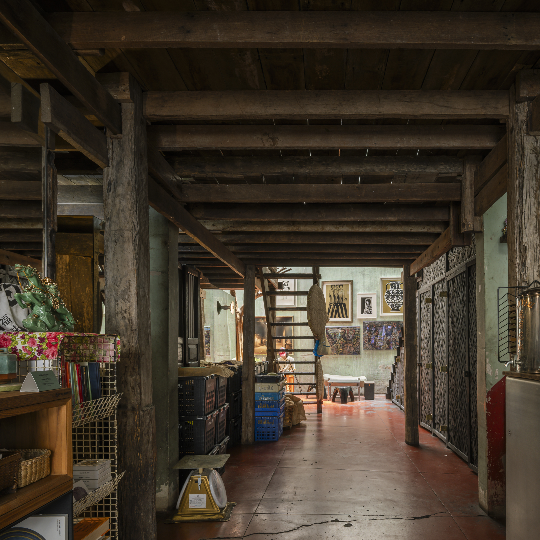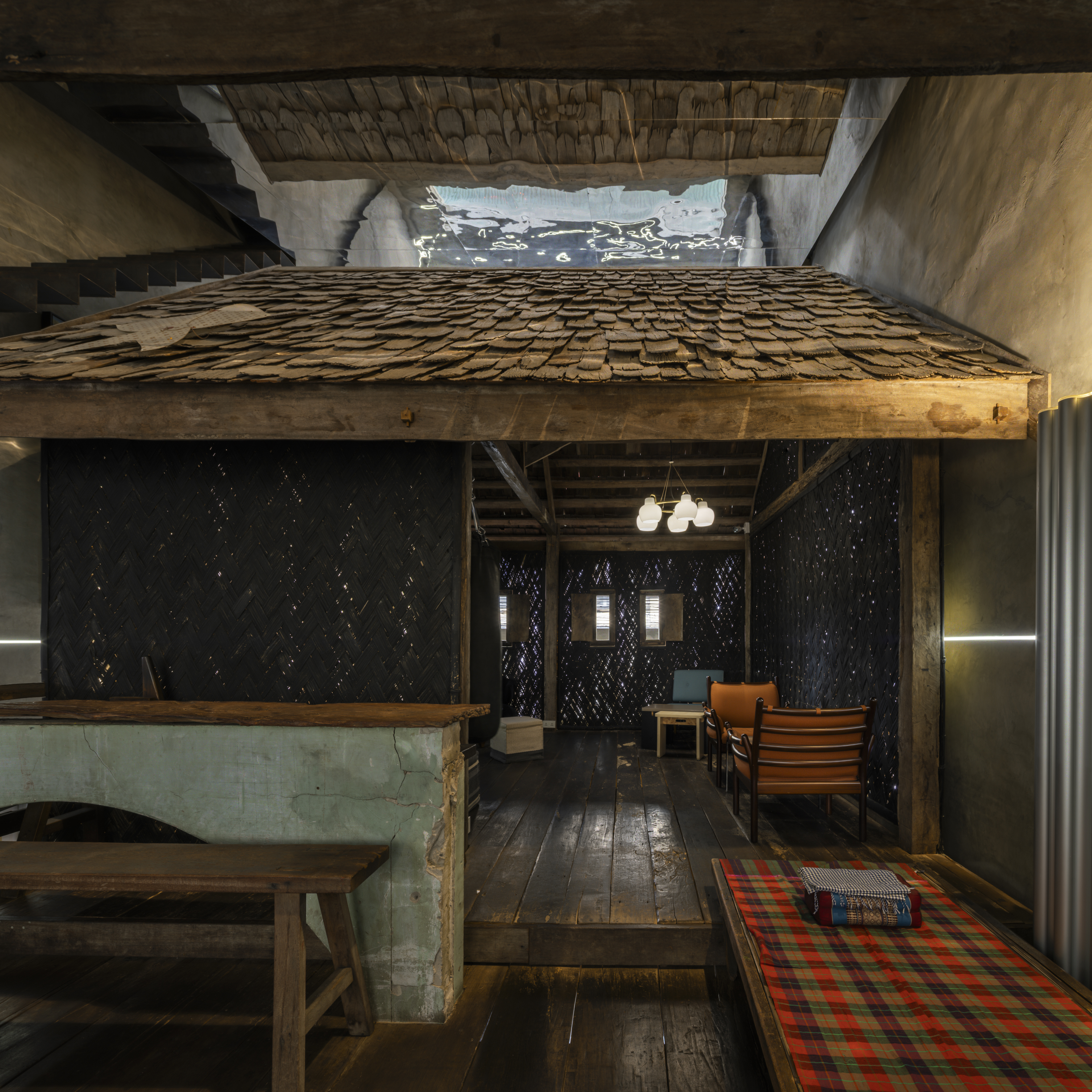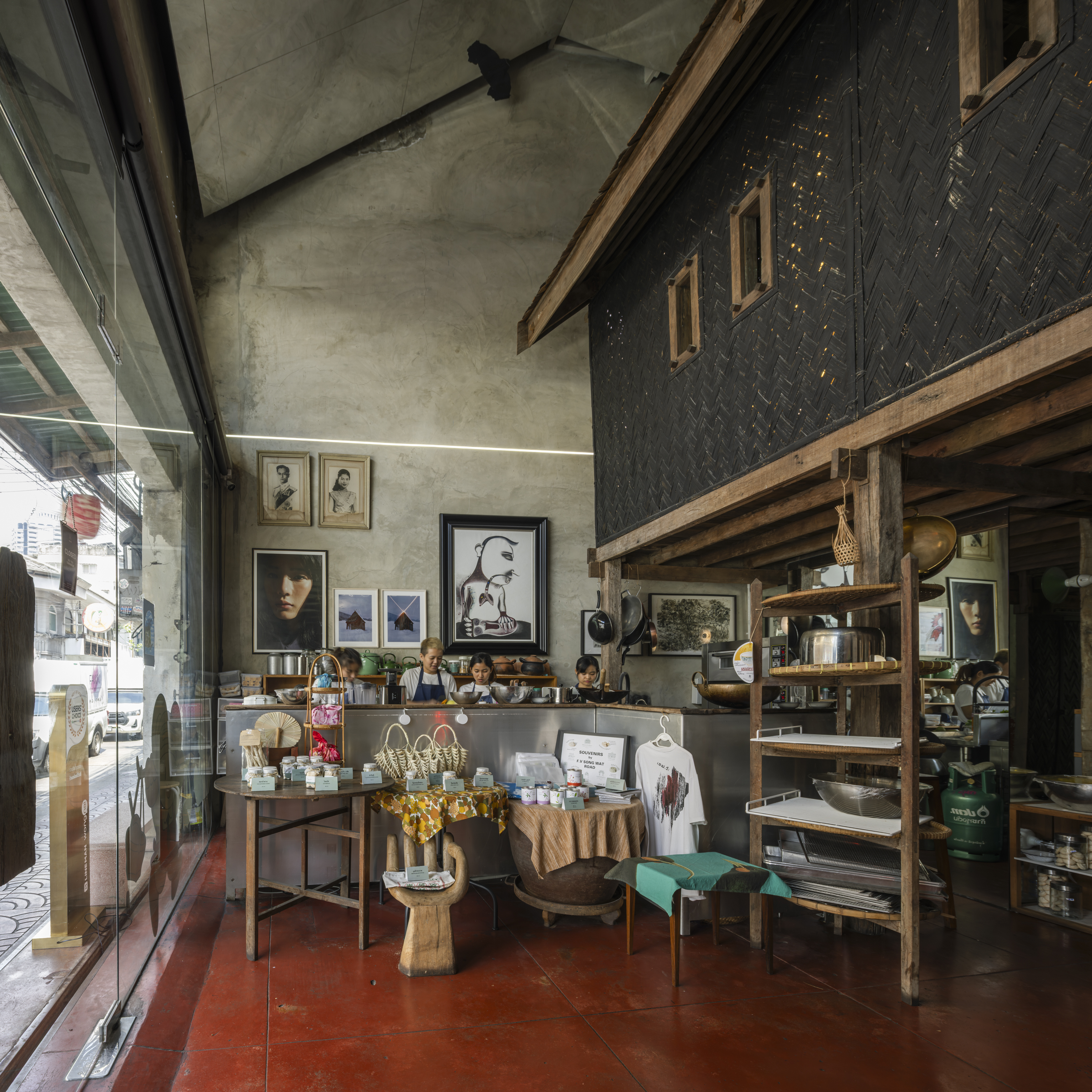 The ambiance of the space draws inspiration from traditional teahouses in Yaowarat, a space rich in intricate details, it reflects the concept of designer and founder, Opas Jankam, who approaches his work from the perspective of what is often seen as “unwanted” or “rejected” particularly local Thai ingredients. This led to research and creative reinterpretation of ingredients that have been overlooked, are disappearing, or abandoned due to changing tastes and cultural consumption over time. Opas also incorporated elements of vernacular Isaan architecture, which he is personally interested in, into the nearly 100 year old concrete building to give the place its distinctive character.