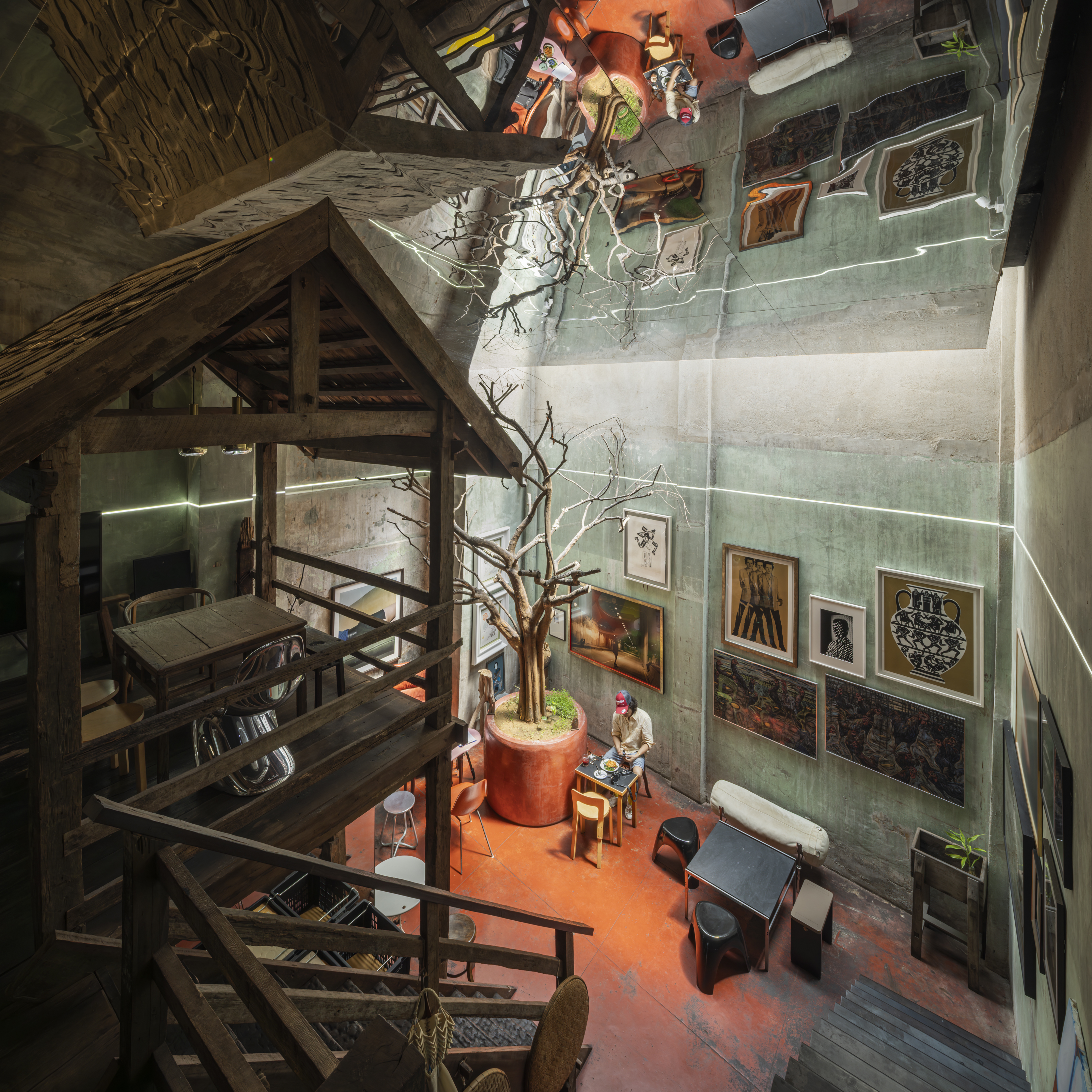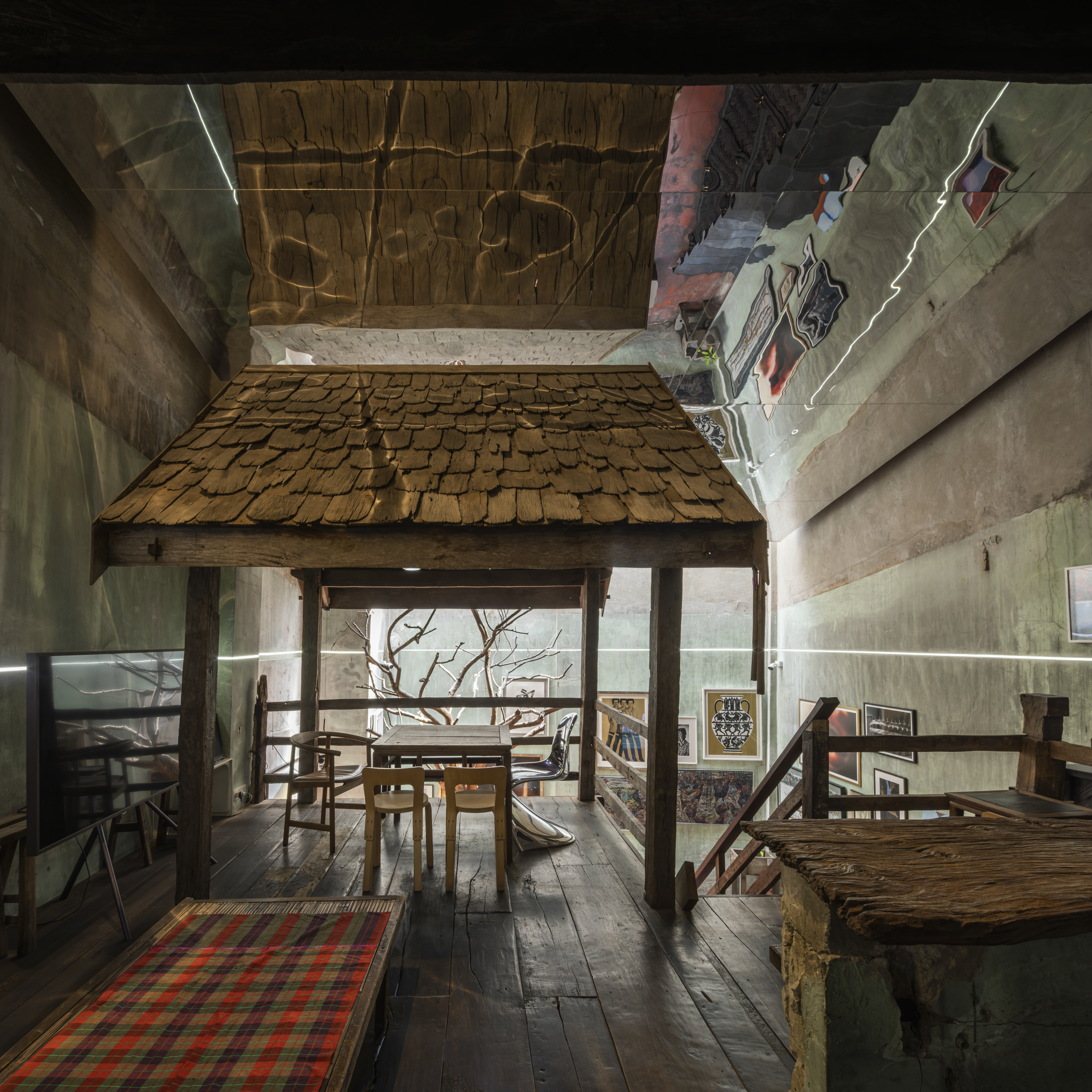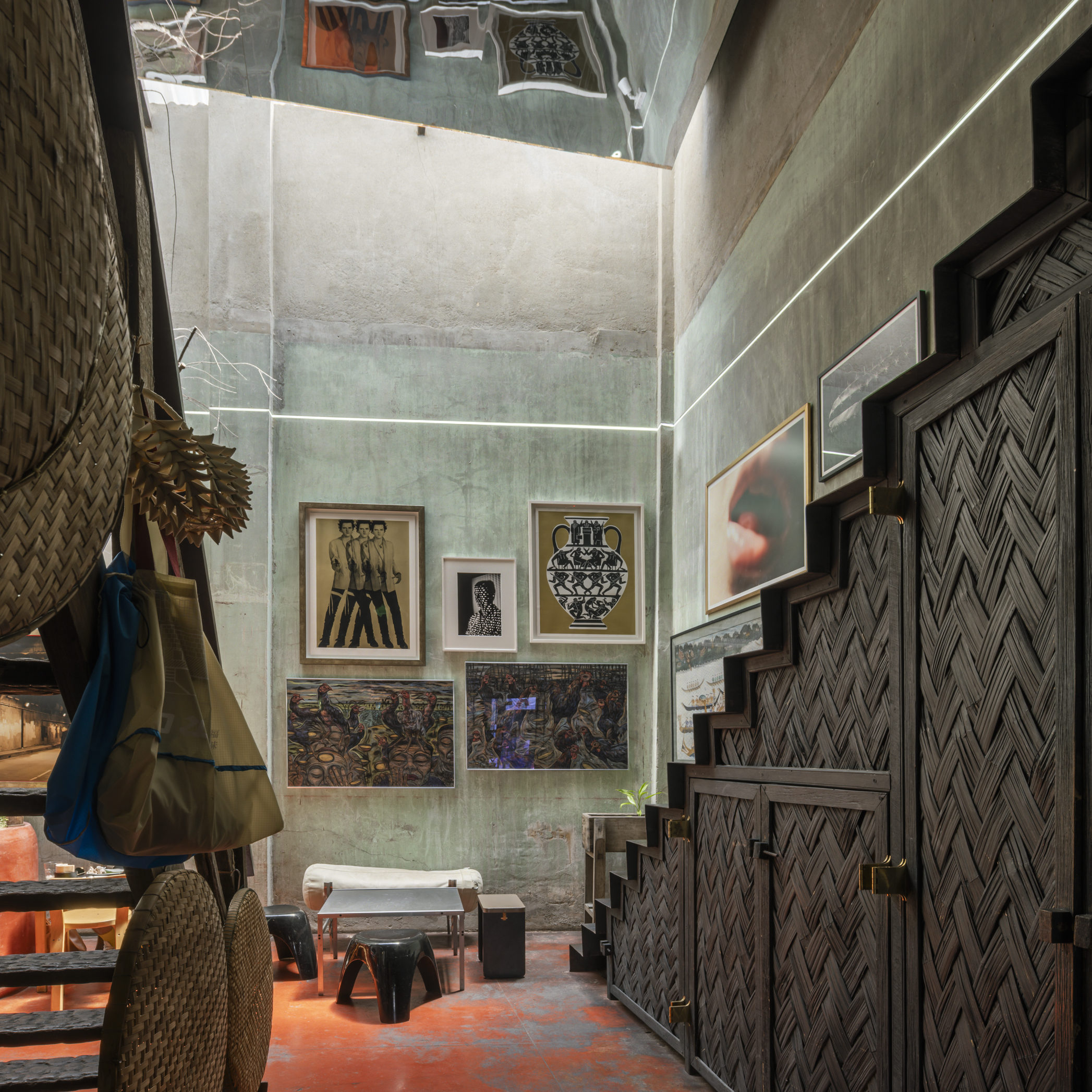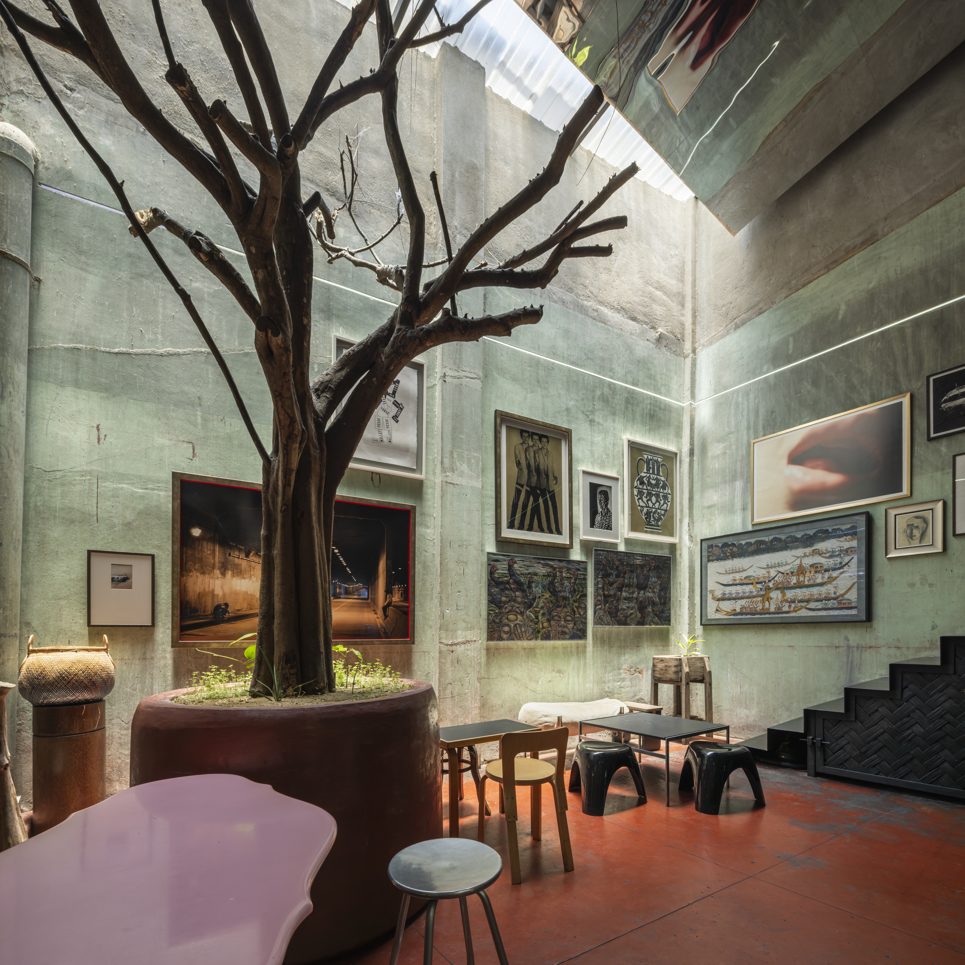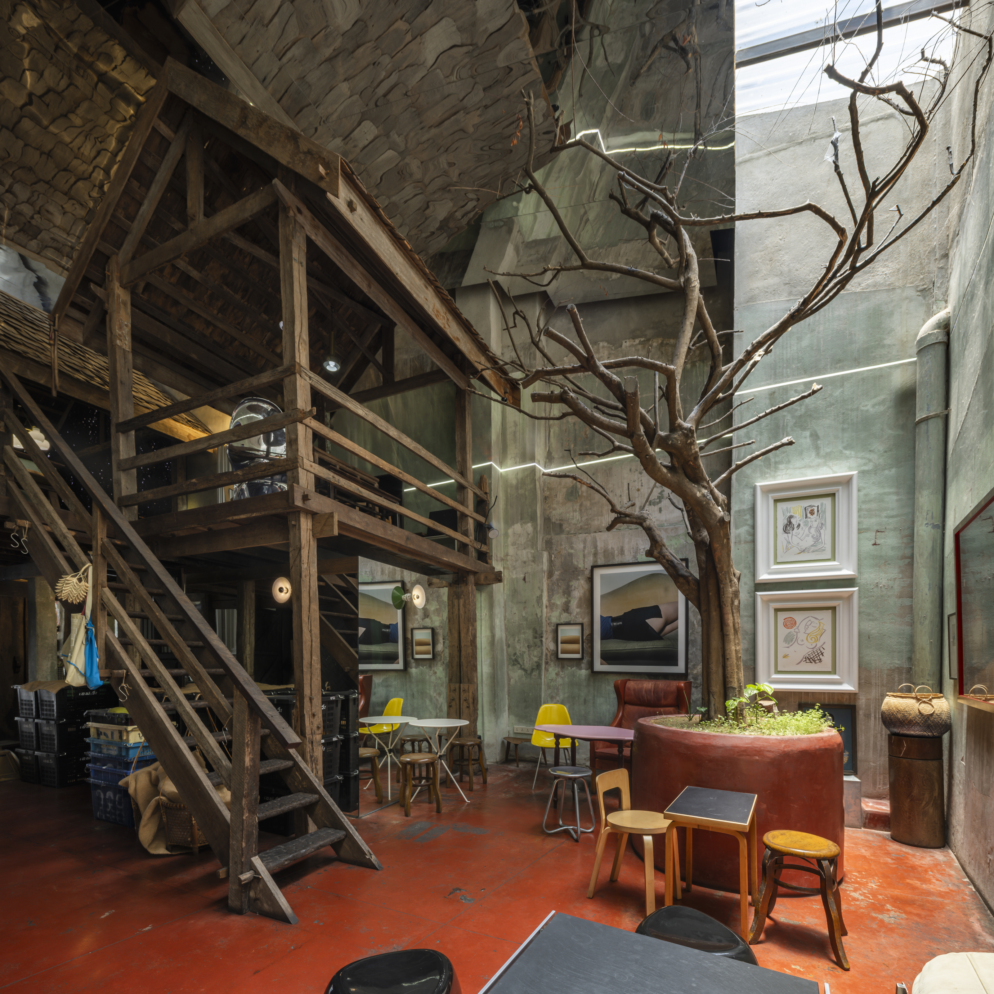 The ambiance of the space draws inspiration from traditional teahouses in Yaowarat, a space rich in intricate details, it reflects the concept of designer and founder, Opas Jankam, who approaches his work from the perspective of what is often seen as “unwanted” or “rejected” particularly local Thai ingredients. This led to research and creative reinterpretation of ingredients that have been overlooked, are disappearing, or abandoned due to changing tastes and cultural consumption over time. Opas also incorporated elements of vernacular Isaan architecture, which he is personally interested in, into the nearly 100 year old concrete building to give the place its distinctive character.