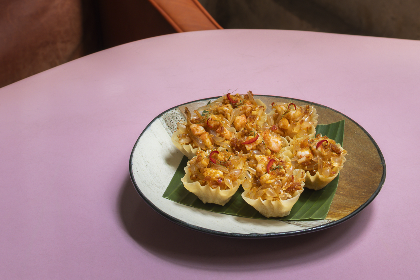 1. Yam Som-O Krathong Thong : A Thai pomelo salad served in crispy golden cups, tossed with fresh, bouncy shrimp — a perfect blend of texture and flavor.